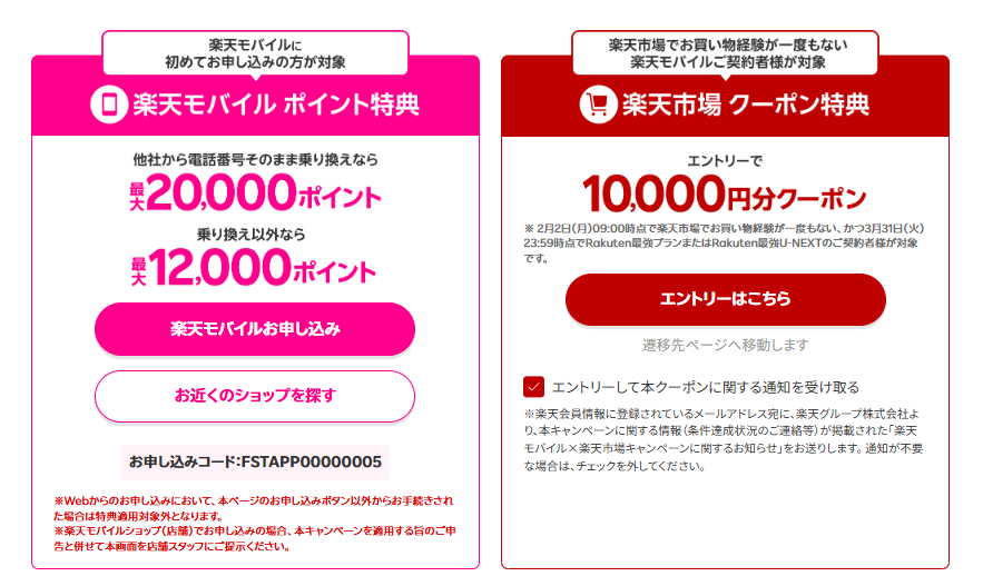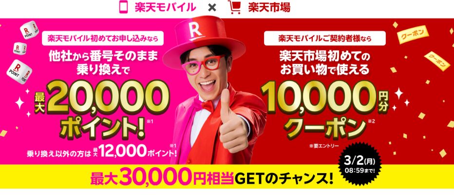 最大30,000円相当GET! 楽天モバイル × 楽天市場 キャンペーンのエントリーはこちら